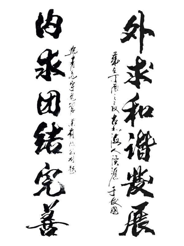 書法家們來到公司活動室,鋪開氈子,擺好筆墨,起筆揮舞,不消片刻,滿室墨香,于先生現(xiàn)場酣暢創(chuàng)作,零距離向我們展示了他精湛的書法技藝,為我公司留下墨寶。